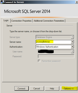 1. In SQL Server Management Studio, enter the High Availability Group Listener name.